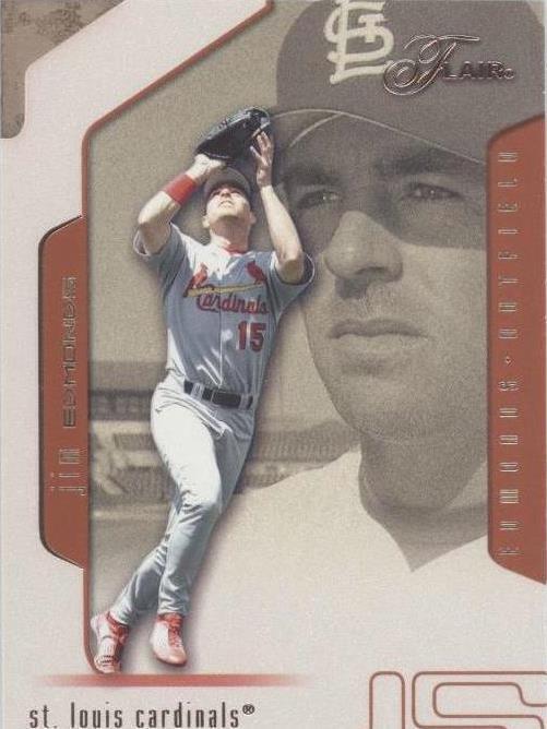 One of the top defensive center fielders of his time, Jim Edmonds played seventeen seasons from 1993-2010. He was a member of the Anaheim/California Angels (1993-1999) before being traded to the St. Louis Cardinals, where he played from 2000-2007. He spent the next couple of years jumping around, playing for the San Diego Padres and the Chicago Cubs in 2008, missing 2009, and finishing with stints on the Milwaukee Brewers and Cincinnati Reds in 2010. He had a career WAR of 60.4 and wore uniform number 15 for ten seasons, from 2000-2010.
