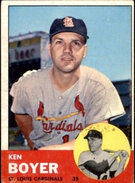 I like the 1963 Topps design with the little photo in the corner. I chose this card of Boyer because he is with the team he spent most of his career with and you can just about make out the uniform number 14 on the front of his jersey…just use your imagination and squint.