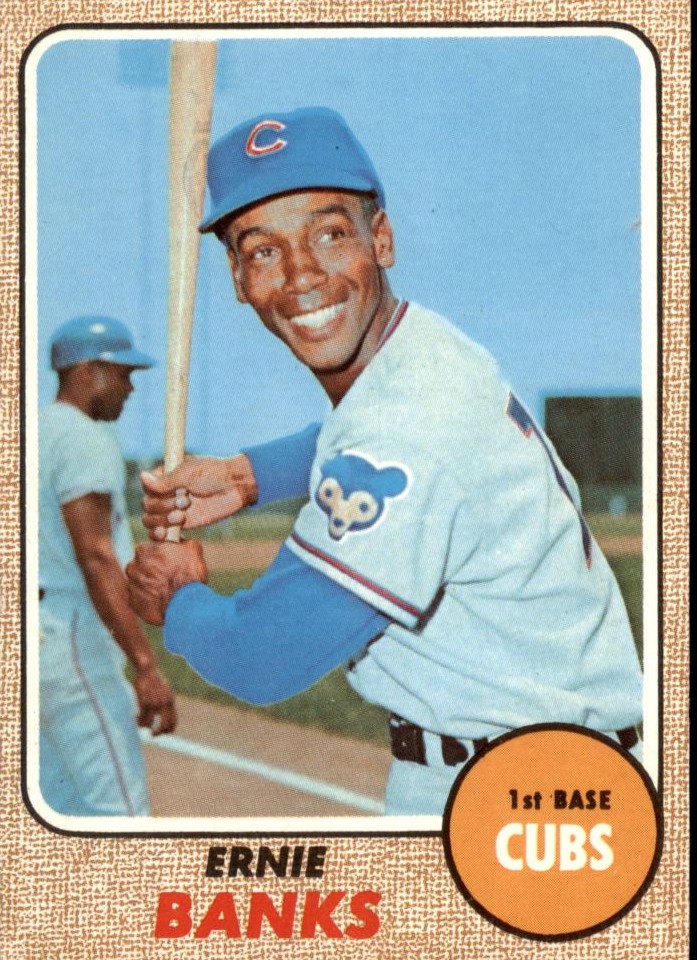 Look at that smile. This 1968 Topps card of Ernie Banks showcases his other nickname “Mr. Sunshine” given to him for his infectious smile and ever-present optimism and love of baseball. Aside from that smile, I really love the old Cubs uniforms and logo, and the design of these 1968 Topps is classic.